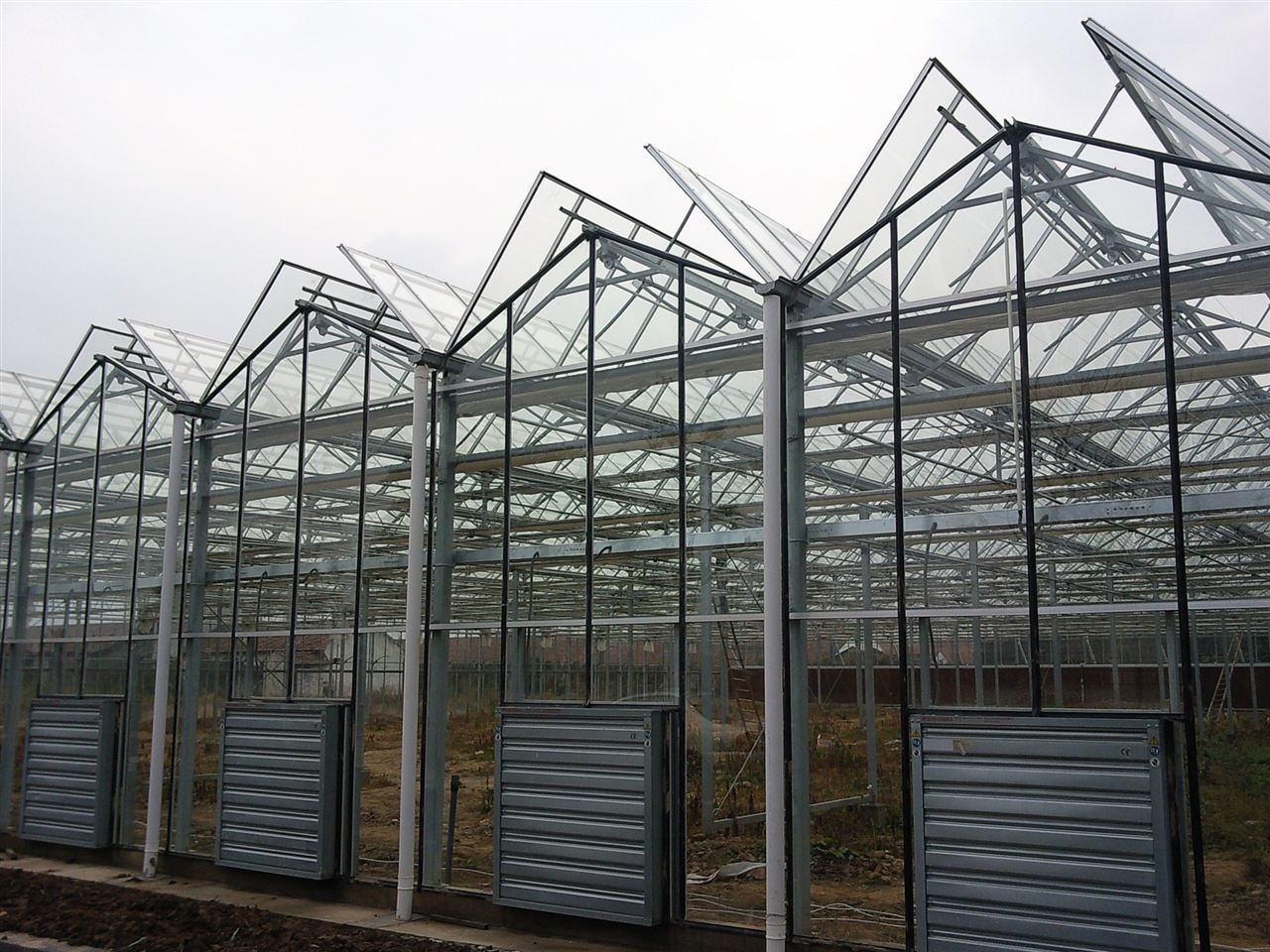 Пространство просторное:Внутреннее пространство стеклянной теплицы просторное, что способствует механизированной работе и установке и размещению крупного оборудования,что делает его удобным для выращивания и управления культурами.